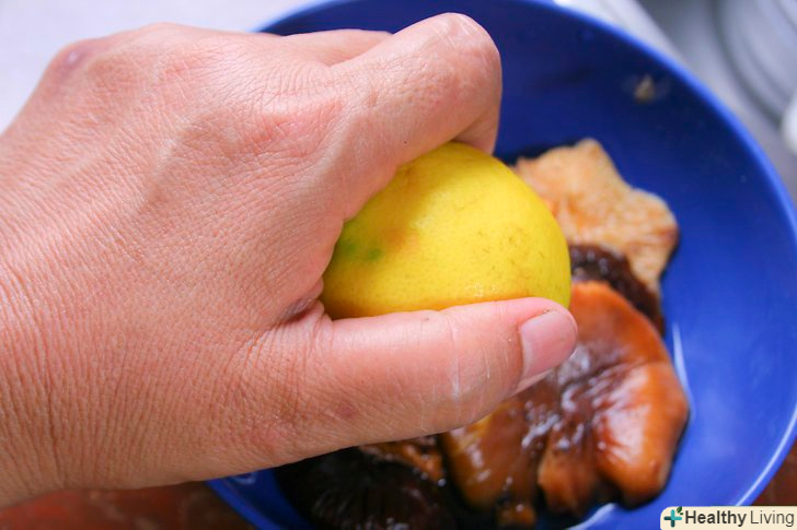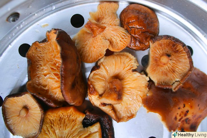 Помістіть гриби в розчин, щоб запобігти втраті - кольору. гриби, які ви збираєтеся приготувати на пару, збережуть кращий колір, якщо їх спершу помістити в розчин проти потемніння. Для цього занурте підготовлені гриби на 5 хвилин в розчин, що містить 1 чайну ложку лимонного соку або 1,5 чайної ложки лимонної кислоти, розмішати в 500 мл води.