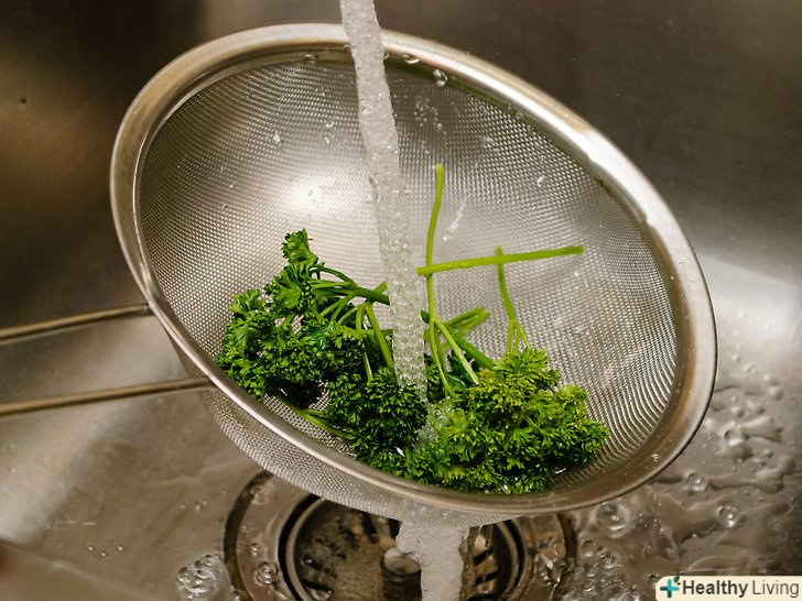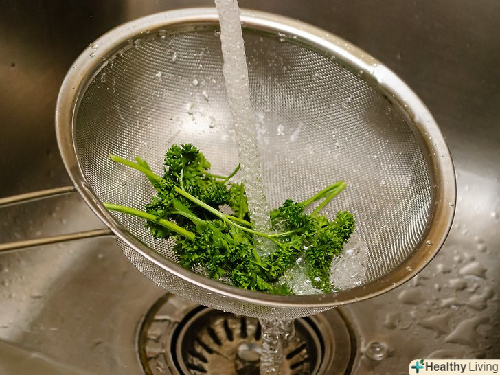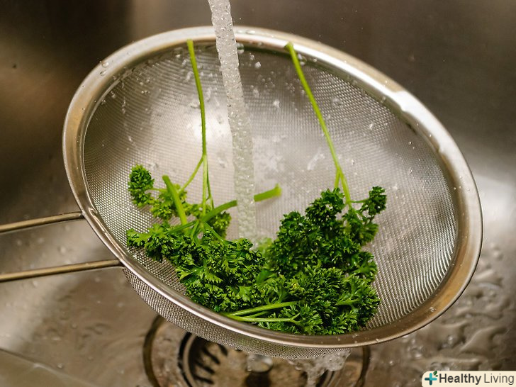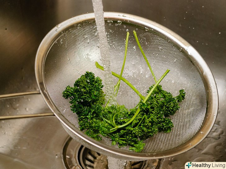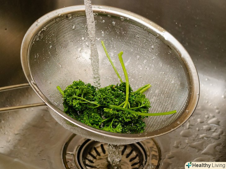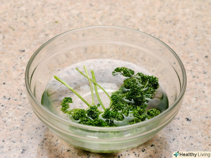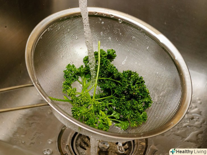 Промийте петрушку. прополощіть зелень в холодній воді, а потім обережно струсіть, щоб видалити зайву воду з листя. Так ви змиєте будь-який бруд і позбудетеся від мошок, які часто залишаються на петрушці.