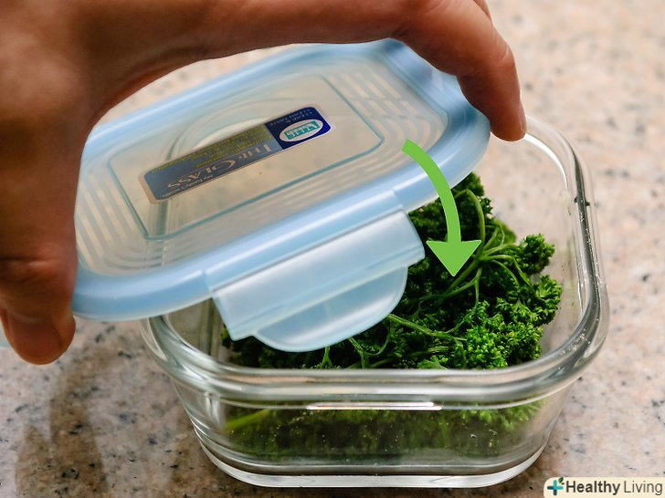 Зберігайте петрушку. коли листя стануть розсипчастими, петрушку можна буде помістити в герметичний контейнер і зберігати в прохолодному, сухому місці. [6]
