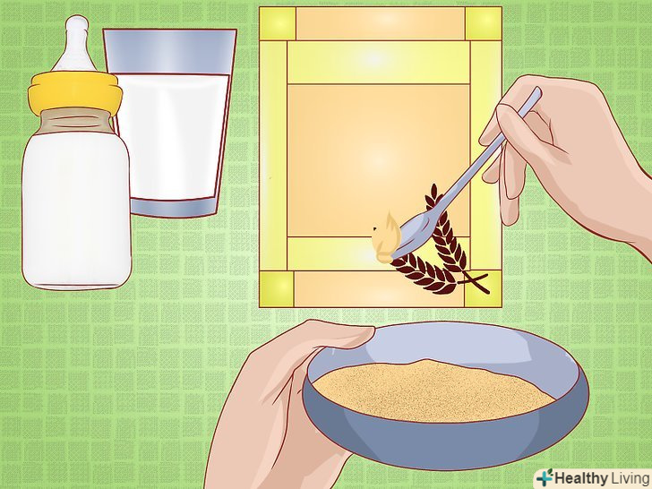 Шукайте каші з добавками вітамінів. багато медичних працівників, в тому числі і педіатри, пропонують починати прикорм з вітамінізованих каш. У таких продуктах містяться певні поживні речовини, які приносять більше користі для організму вашого малюка. [3]- Шукайте багаті залізом зернові культури. Позначку про це можна знайти на лицьовій стороні упаковки. Двічі прочитайте список інгредієнтів і калорійності продукту на зворотному боці, щоб зрозуміти, чи дійсно злаки збагачені залізом. Добова доза заліза для дитини становить близько 10-11 міліграм. [4]
