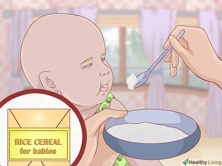 Дайте дитині спробувати рисову кашу. рисову кашу купити найпростіше, так як вона найбільш поширена. У продажу можна знайти білий і коричневий рис.- Рис найчастіше радять для немовлят, так як він з найменшою ймовірністю викликає алергію у дітей. [9]
