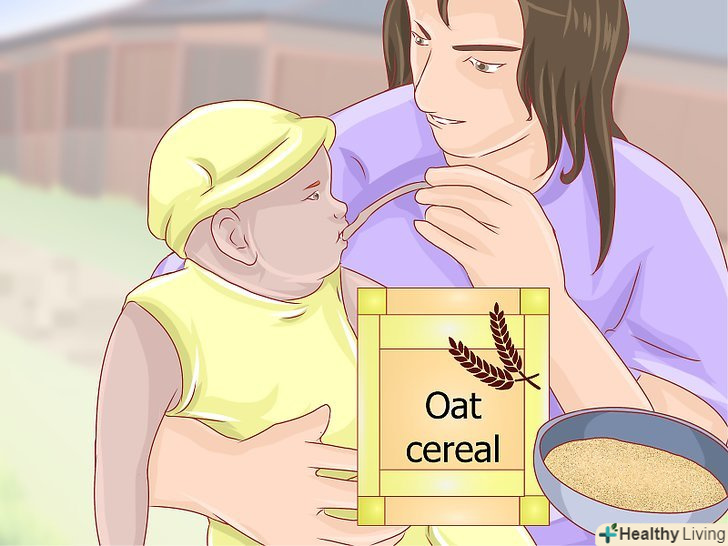 Приготуйте дитині вівсяну кашу. якщо ви не хочете годувати дитину рисовою кашею або пшеничними пластівцями, спробуйте приготувати вівсяну крупу. Вона практично не містить миш'яку і багата поживними елементами.- Як і рисова крупа, вівсяні пластівці-відмінний варіант, так як вони складаються з цільних зерен. Крім того, ймовірність алергії на овес у дитини дуже низька. [13]