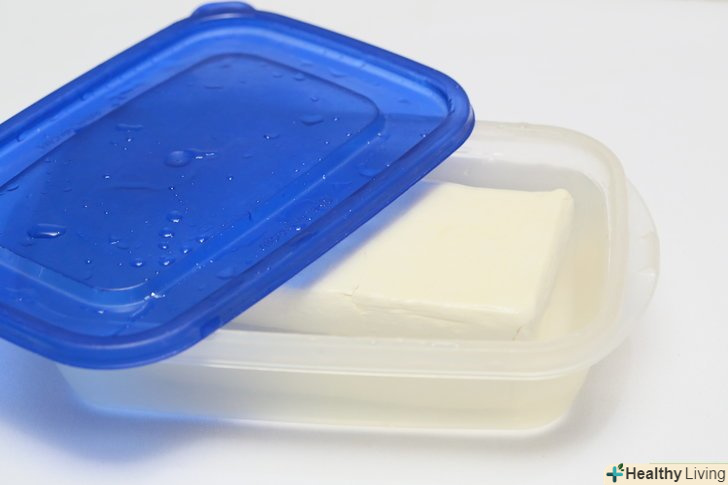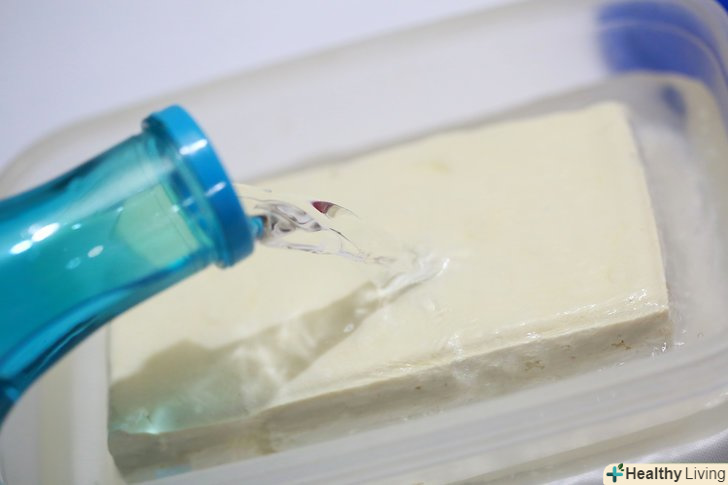 Залийте тофу водою. Тофу не буде зберігатися довго без вологи. Якщо ви не хочете, щоб тофу висох або зіпсувався, налийте в контейнер води. [3]- Налийте достатню кількість води, щоб рідина повністю закривала тофу.