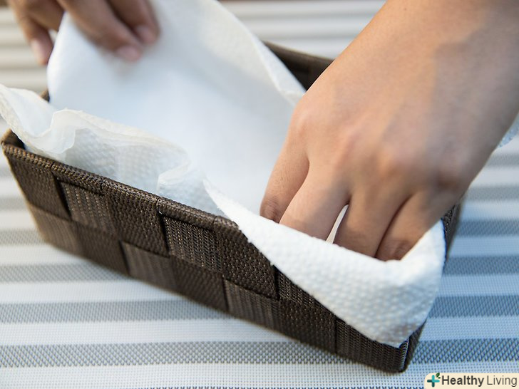 Складіть паперовий рушник вчетверо, покладіть його на дно кошики.якщо ви використовуєте великий посуд, наприклад, миску, візьміть кілька аркушів паперового рушника, згортати їх не треба.
