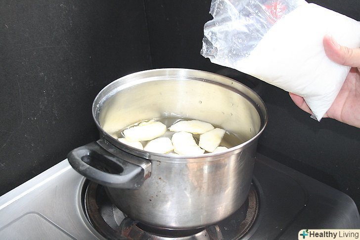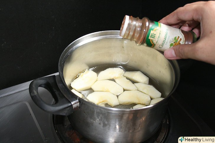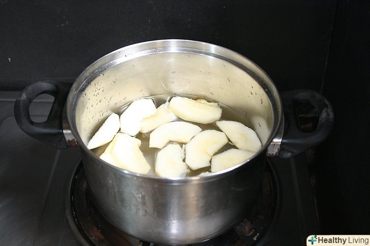 Покладіть фрукти у велику каструлю, додайте приблизно 2,5 см води і поставте каструлю на гарячу плиту.