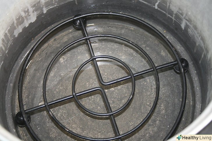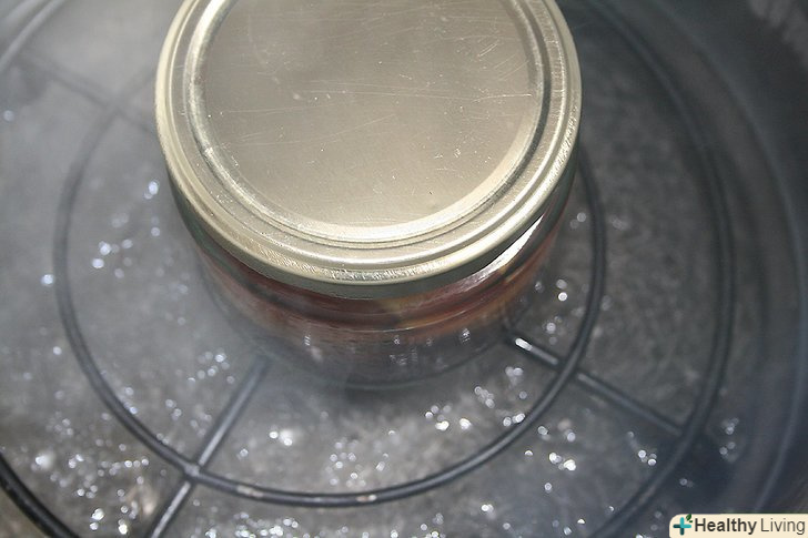 Обробіть банки з фруктами. Переконайтеся, що ви міцно закрили кришки. Поставте велику каструлю з водою на плиту і доведіть її до кипіння. Для цього кроку існують спеціальні каструлі, але ви можете скористатися будь-якою великою каструлею. Щоб банки не лопалися, ви можете покласти на дно грати. Інший спосіб обробити банки, це використовувати каструлю для риби з кошиком, розігріту на газовій плиті, поза домом.