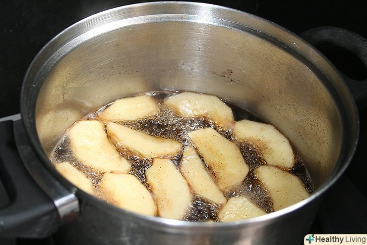Варіть фрукти на низькому вогні, поки вони не размягчатся, для чого вистачає близько 20 хвилин варіння.фрукти повинні бути напівпрозорими, а їх сік повинен перетворитися в сироп.