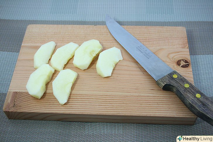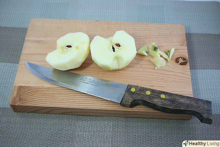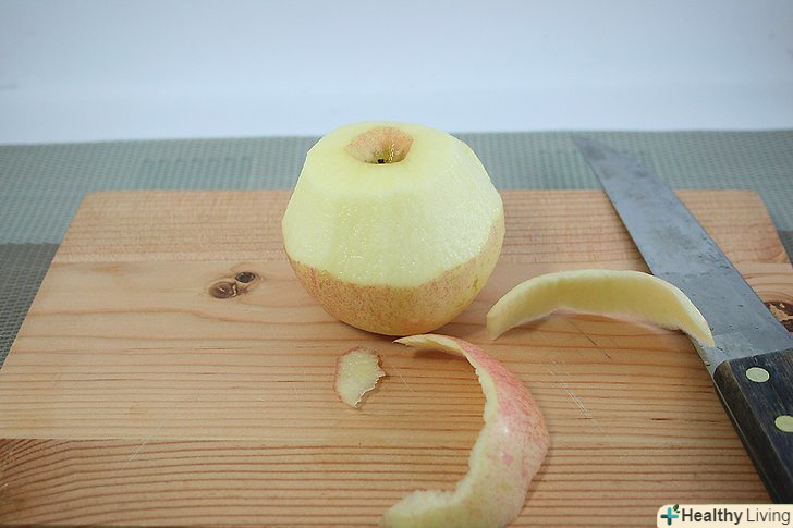 Очистіть фрукти.ви можете зробити це, використовуючи спеціальний ніж для очищення овочів і фруктів, і постарайтеся чистити шкірку дуже тонко. Нічого страшного, якщо у вас залишиться трохи шкірки, так як це не вплине на якість фруктів, але відрізавши товсті шматки шкірки, Ви залишите меншу кількість фруктів для консервування.- Ви можете здерти шкіру з м'яких фруктів на зразок персиків і помідорів. Опустіть фрукт в киплячу воду на 30-60 секунд. Шкірка почне лопатися. Потім за допомогою шумівки вийміть фрукт з води і перекладіть в холодну воду, щоб ви могли з ним працювати. Після цієї процедури шкіра буде злазити дуже легко. Ви можете закінчити процес за допомогою ножа.