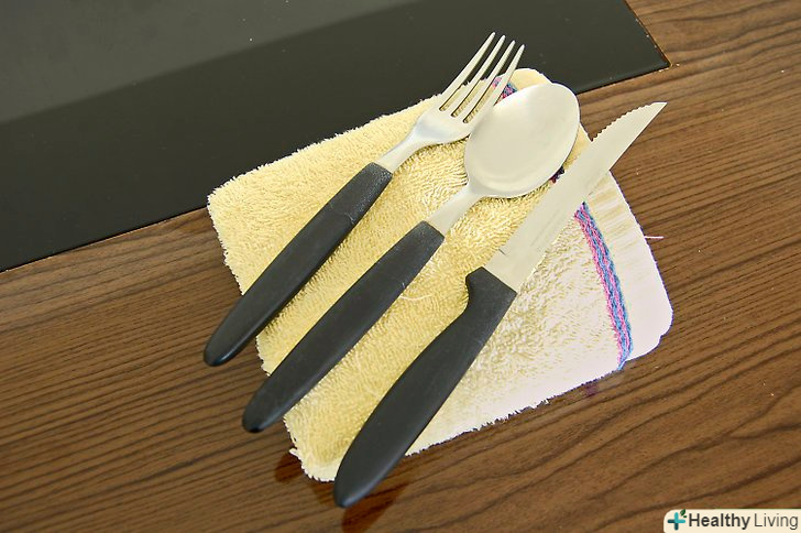 Візьміть з собою вилку, ложку і ножик.у багатьох магазинах продаються недорогі столові прилади (якщо ви не хочете брати їх з дому). Ви так само можете використовувати пластмасові прилади, але металеві набагато міцніше і зручніше.- Було б непогано взяти з собою парочку столових приладів, на випадок якщо інші виявляться брудними.