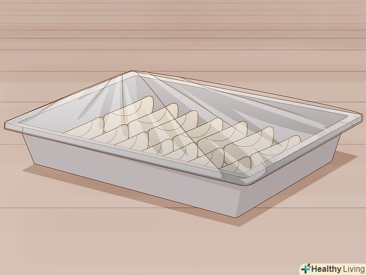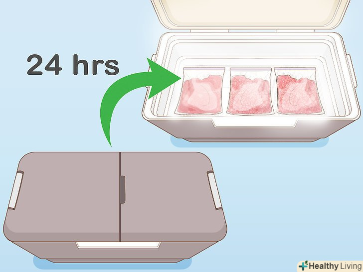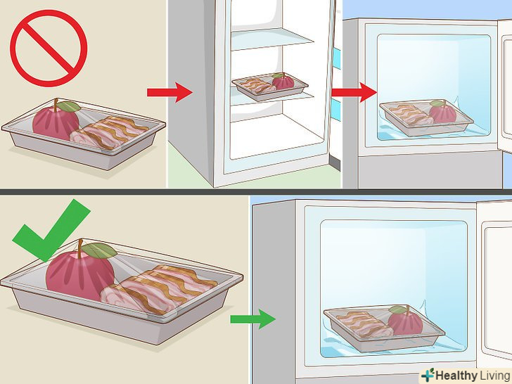 Поставте рознос в морозилку.переконайтеся, що в морозилці немає інших продуктів.- Поки їжа заморожується, не відкривайте морозилку занадто часто. Це призведе до того, що їжа буде заморожуватися довше, і на ній почнуть утворюватися кристали льоду.