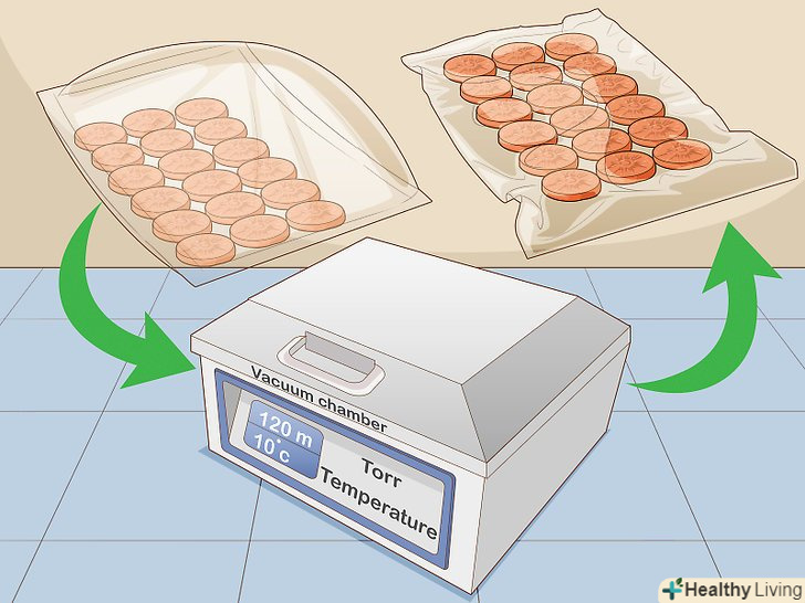 Помістіть Заморожені продукти у вакуумну камеру, виставлену на 120 мТорр (0,158 атмосфери).температуру поставте на 10 градусів.- Процес сублімації повинен завершитися протягом тижня, в залежності від встановлених параметрів.