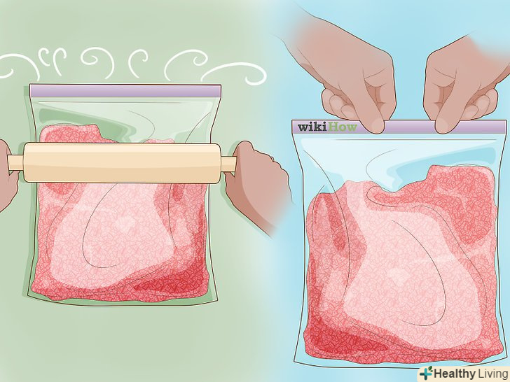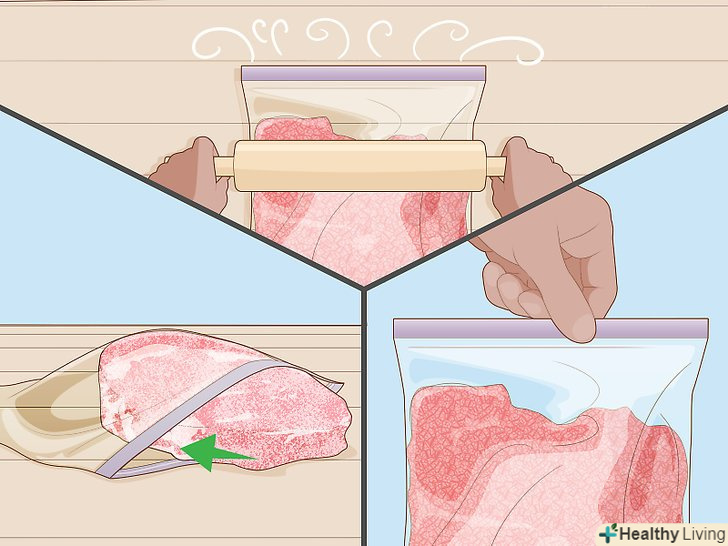 Складіть їжу в пакети для заморозки.викладіть пакети плоским рівномірним рівнем, а не просто гіркою в кутку.- Випустіть повітря, перш ніж закривати пакети.