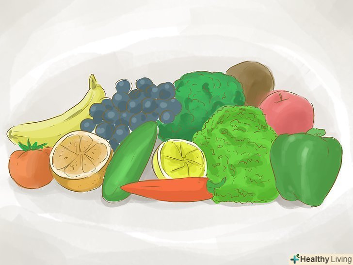 Включіть в раціон різноманітні продукти з основних груп.збалансована дієта включає в себе фрукти, овочі, цільні злаки, нежирні молочні продукти, пісні білки (які входять в квасолю та інші бобові, горіхи і зернові).[1] велика частина щодня вживаних вами продуктів повинна входити в одну з цих категорій.- Спробуйте зробити основою кожного прийому їжі такі продукти рослинного походження як цільні злаки, фрукти і овочі.[2]