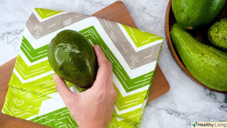 Визначте, чи дозріло авокадо, по його нерівній шкірці. щоб з'ясувати, чи дозріло авокадо, можна помацати і оглянути його. У стиглого авокадо темно-зелена горбиста шкірка. Нестиглі фрукти мають більш світлу і гладку зелену шкірку. Огляньте і обмацайте авокадо. Після цього спробуйте злегка здавити його. Стиглі фрукти щільні, але податливі. Якщо авокадо тверде, воно не дозріло.[1]- Стигле авокадо необхідно з'їсти протягом 1-2 днів.