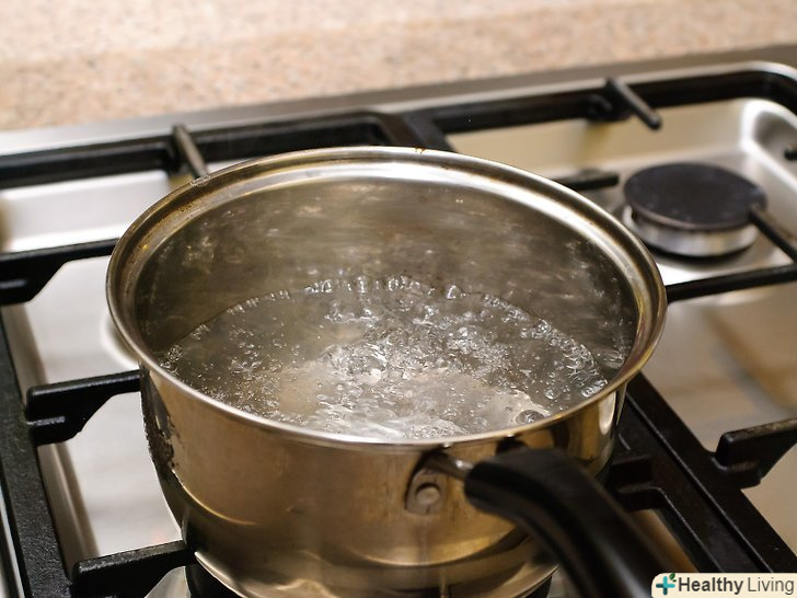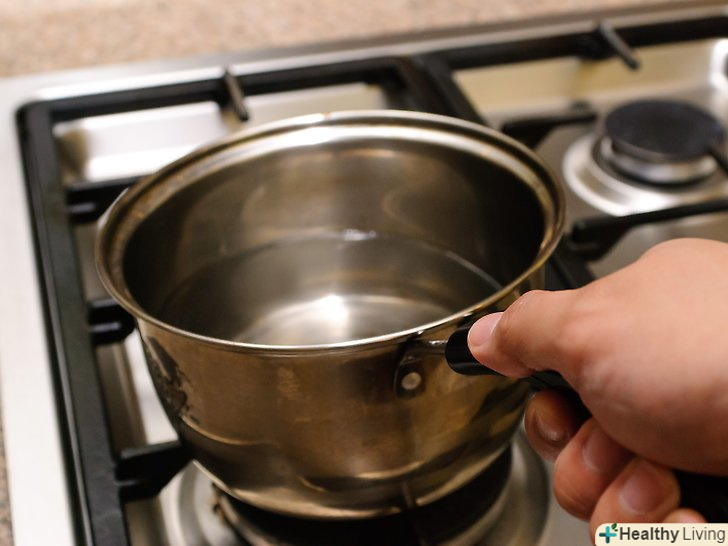 Закип'ятіть каструлю води.[1] наповніть глибоку каструлю водою наполовину. Поставте каструлю на плиту, на сильний вогонь і доведіть воду до кипіння.- Перш ніж кип'ятити воду, переконайтеся, що її достатня кількість. Поставте банку в каструлю і перевірте рівень води. Рівень води повинен бути приблизно таким же, як рівень меду в банку.