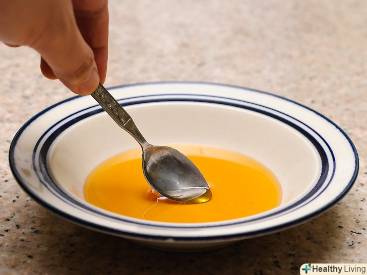 Додайте в мед трохи води.ложкою покладіть трохи меду в невелике блюдце або тарілочку. Додайте в мед столову ложку чистої води і перемішайте. Продовжуйте, поки мед не досягне потрібної констистенції.[4]- При використанні даного методу нагрів не потрібен.