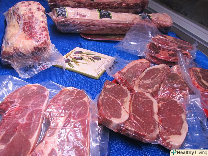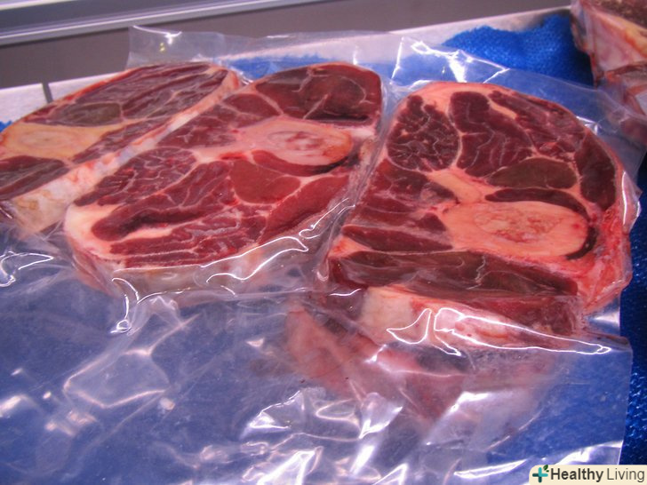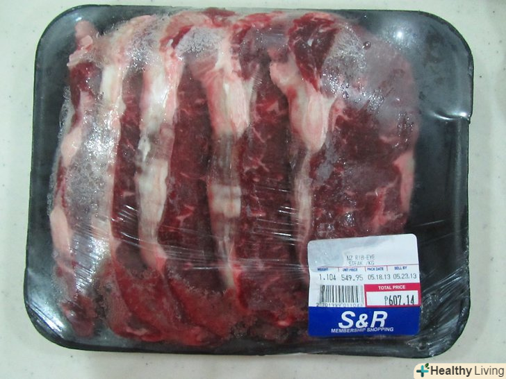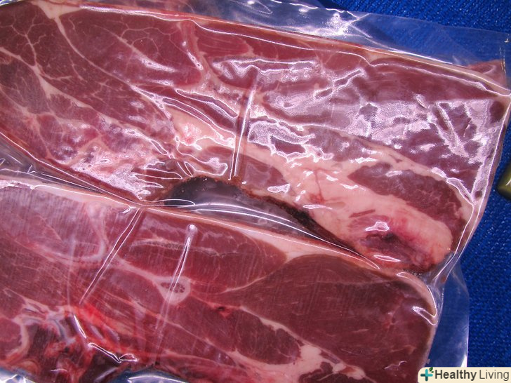 - Перед покупкою завжди перевіряйте упаковку. М'ясо повинно бути повністю запечатано без дірочок і без доступу до повітря. Яловичина, запечатана у вакуумній упаковці, пурпурно-червоного кольору, а після роздруківки і впливу кисню вона стає яскраво-червоною. Якщо ви взяли м'ясо у вакуумній упаковці, яке яскраво-червоного кольору до того, як ви відкрили її, можливо, упаковка була пошкоджена, тому не купуйте м'ясо.