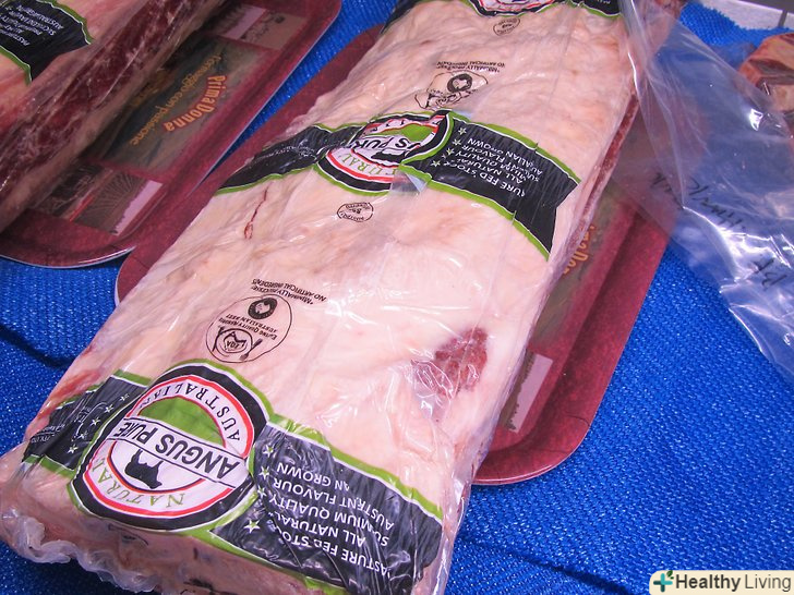 - Ознайомтеся зі зведенням правил харчування і здоров'я. Перевірте, які саме правила застосовуються до яловичини. Яловичина може бути позначена як пісна і дуже пісна. Щоб вважатися пісної, в ній повинно міститися менше 10 г загальних жирів, менше 4,5 г насичених жирів і менше 95 мг холестерину. Щоб вважатися дуже пісної, в ній повинно міститися менше 5 г загальних жирів, менше 2 г насичених жирів і менше 95 мг холестерину. На деяких упаковках яловичини може бути контрольна мітка Американської асоціації серця (American Heart Association – AH). Вона не відноситься до правил харчування і здоров'я, а є схваленням ААС. Яловиче м'ясо, схвалене ААС, відповідає стандартам серцевого здоров'я.