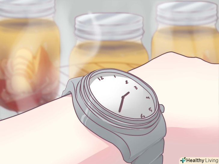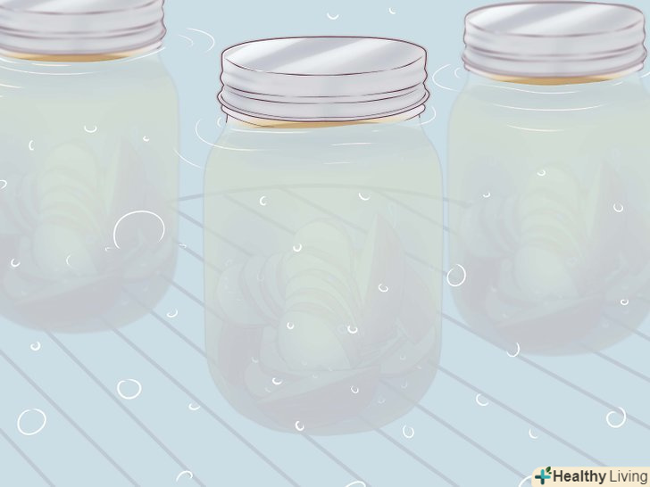 Почистіть 9 скляних (500 мл.) банок для консервування і металеві кришки з милом і гарячою водою.Тримайте банки і кришки гарячими, поки не будете готові їх заповнити.- Банки і кришки можна тримати гарячими, помістивши їх догори ногами в каструлю з гарячою водою, або помити їх в посудомийній машині і тримати там, поки вони не знадобляться.