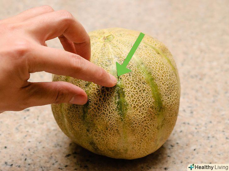 Перевірте плодоніжки.[6] якщо ви купуєте диню, а не вирощуєте її у вашому саду, то перед покупкою перевірте, щоб на ній не було великої плодоніжки. Якщо вона є, не купуйте її. Це означає, що її зірвали нестиглої, і вона не дозріє, що б ви не робили.- Також слід перевірити шкірку навколо плодоніжки. Якщо на шкірці є тріщини, значить її зірвали рано.