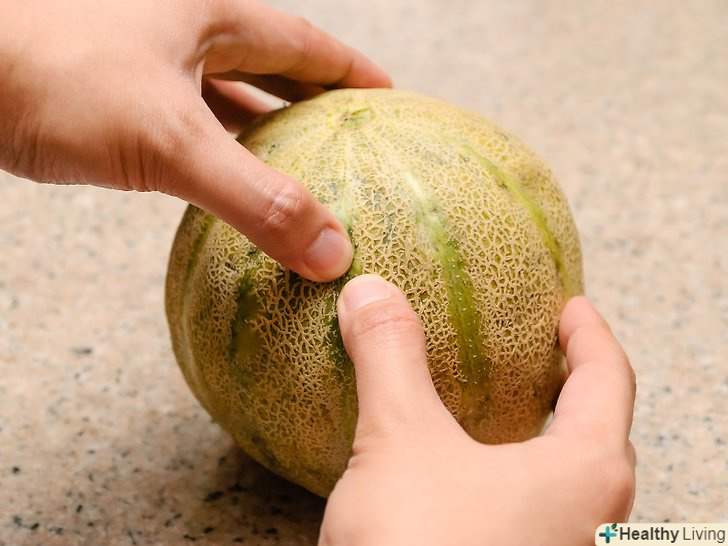Покладіться на свої відчуття.злегка натисніть З сторону, зворотну плодоніжки. Вона повинна зліг піддаватися. Якщо ж вона занадто тверда, то вам слід залишити диню дозрівати при кімнатній температурі протягом одного-двох днів.- З іншого боку якщо при натисканні вам здалося, що шкірка волога або м'яка, то диня перезріла.