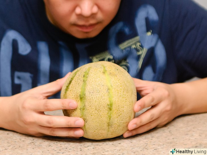 Понюхайте диню.Понюхайте диню з боку, протилежної плодоніжки. Ви повинні відчути характерний запах дині.- Якщо запах не сильний, залиште диню дозрівати на день або два.