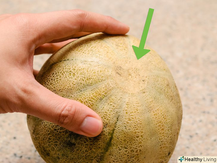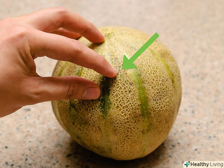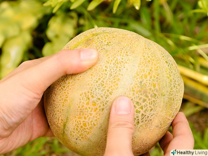 Подивіться на колір мускусної дині. [1] ніколи не зривайте диню, якщо вона зеленого кольору. Така диня, безумовно, не стигла. Дозріла диня має жовтий або жовтувато-коричневий колір.- Також не варто вибирати диню, грунтуючись тільки на кольорі. Якщо зелена диня безумовно незріла, то і жовта або жовтувато-коричнева диня, теж може бути ще не зовсім дозрілої.