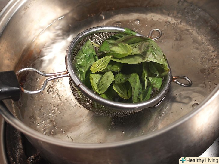 Закип'ятіть каструльку води.вона повинна бути достатнього розміру, щоб вмістити листя базиліка.