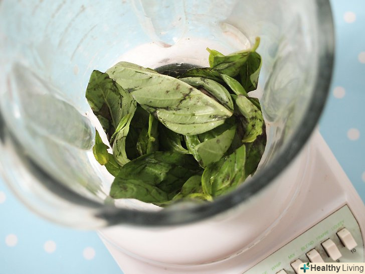 Покладіть 1-2 жмені базиліка в кухонний комбайн.наповніть чашу комбайна, але не набивайте її листям занадто щільно.