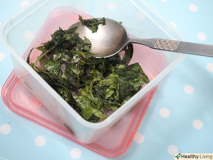 Помістіть листя в контейнер.можна скористатися пластиковим пакетом із застібкою, пластиковим лотком, порожнім молочним пакетом або іншим контейнером, який легко запечатати.