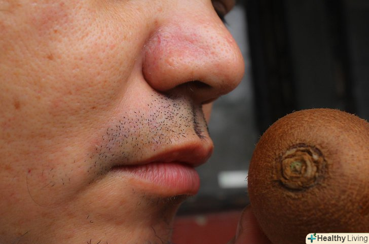 Перевірте, чи не виходить від Ківі кислий запах.зіпсовані ківі мають різкий, трохи кислуватий запах. Понюхайте шкірку і м'якоть плоду: якщо запах неприємний, швидше за все, ківі зіпсувалося.[3]- Запах свіжого ківі злегка нагадує запах цитрусових, з легкою солодкуватою ноткою.