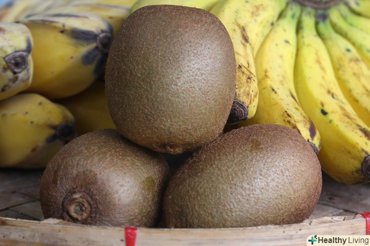 Нестиглі ківі краще зберігати при кімнатній температурі поруч з бананами або яблуками.банани і яблука виділяють велику кількість етилену, який прискорює дозрівання будь-яких плодів, що знаходяться в безпосередній близькості. Щоб прискорити дозрівання, покладіть ківі і банан в паперовий пакет або просто в миску для фруктів.[6]- Можна також зберігати ківі по сусідству з помідорами, абрикосами, інжиром, динею, авокадо, грушами або персиками — всі ці фрукти прискорять дозрівання ківі.