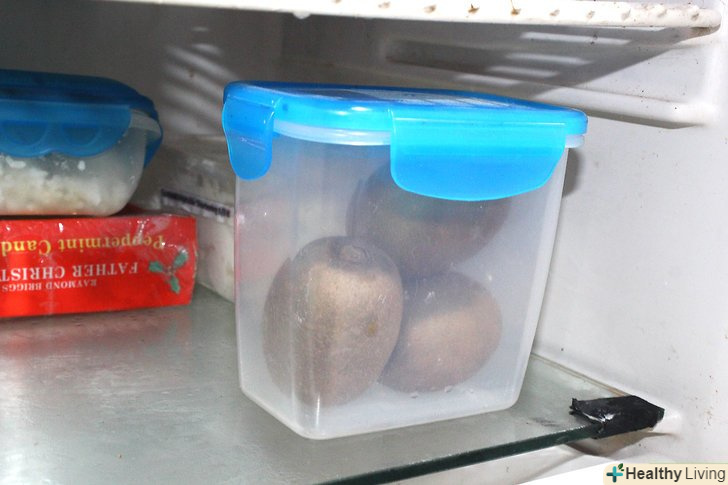 Щоб стиглі ківі не зіпсувалися, зберігайте їх в холодильнику.як тільки ківі дозріло, стало м'яким і ароматним, його треба покласти в холодильник, щоб загальмувати процес подальшого дозрівання. Якщо вам треба зберегти половинку розрізаного ківі, загорніть його в харчову пінку або фольгу і покладіть в холодильник. Розрізані ківі також можна зберігати в холодильнику в герметичному пластиковому контейнері.[7]- Стиглі Ківі можуть зберігатися в холодильнику до 3-4 діб.