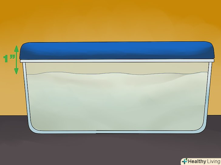 Залиште в контейнері вільне місце.в результаті заморозки хумус збільшиться в об'ємі, тому не наповнюйте тару доверху. Збільшення обсягу при заморожуванні відбудеться через високий вміст вологи в продукті.[2] якщо ви наповніть кожен контейнер під саму кришку, то під час заморозки хумус її підніме.- Наприклад, якщо у вас стільки хумуса, що можна цілком наповнити два великих пластикових контейнера Tupperware, то краще взяти три контейнери. Нехай під кришкою залишиться кілька сантиметрів порожнього простору.[3]