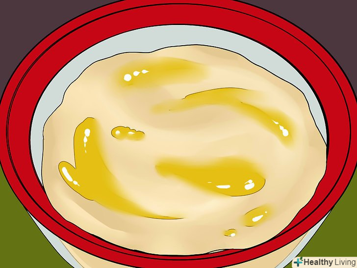 Злегка полийте хумус оливковою олією.Тонкий шар оливкової олії на поверхні дозволить зберегти хумус соковитим і не пересушити його при заморожуванні. Можна налити оливкову олію прямо з пляшки або з мірної склянки. Відміряти масло не потрібно - просто трохи полийте хумус зверху, щоб покрити всю його поверхню тонким шаром масла.[4]- Якщо за час зберігання в морозилці хумус втратить багато вологи, його консистенція стане зернистою і він придбає неприємний присмак перемороженого продукту.