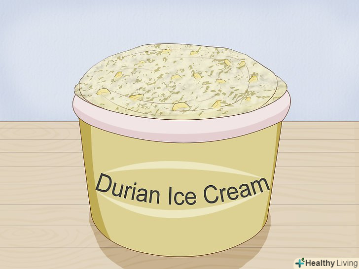 Спробуйте приготувати з дуріана морозиво.Дуріанове морозиво популярно в багатьох країнах Азії. Якщо вам не вдасться купити готове морозиво, його можназробити самостійно і додати скибочки дуріана.- Якщо дуріан не сподобався вам з першого разу, спробуйте легкі закуски з цим фруктом, наприклад морозиво або чіпси, щоб звикнути до його специфічного смаку.[11]