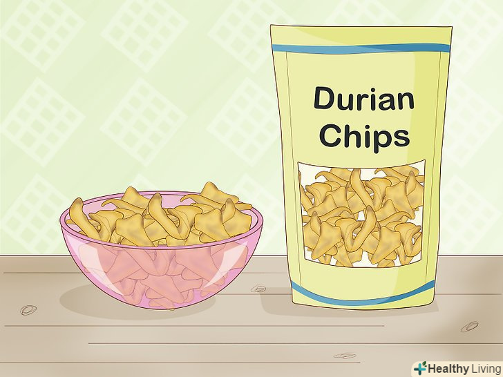 Спробуйте дуріанові чіпси.це обсмажені в маслі тонкі скибочки дуріана. Дуріанові чіпси можна придбати в магазині азіатських продуктів або замовити через Інтернет.- Дуріанові чіпси мають більш м'який аромат і нагадують звичайні картопляні чіпси з легким фруктовим присмаком.[12]