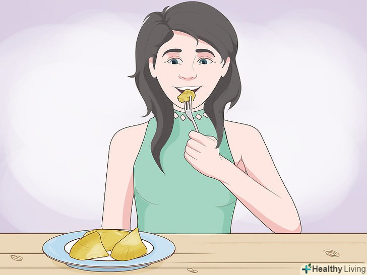 Розріжте м'якоть на скибочки.можна не відламувати м'якоть руками, а нарізати її тонкими скибочками і викласти їх на тарілку або додати в інші страви. Відокремте стручок м'якоті від оболонки, покладіть його на обробну дошку і поріжте ножем на невеликі шматочки. При цьому знайдіть і викиньте кісточку.[9]