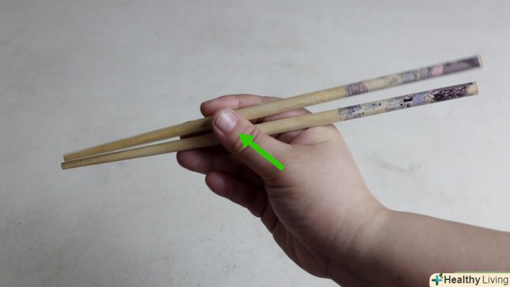 Не ворушіть великим пальцем. [2] великий палець тримайте теж прямо, не згинайте в кісточці.- Ваша нижня паличка теж не повинна ворушитися в процесі їжі.