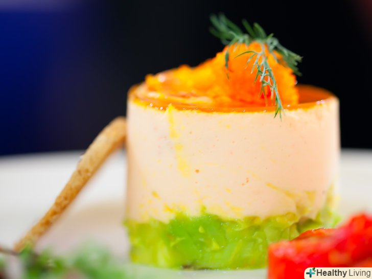 Уникайте монохромної колірної схеми.подається блюдо буде виглядати більш привабливо, якщо присутні контрастні кольори. Уявіть, що перед вами миска непоказною вівсяної каші або тарілка пасти без будь-якого соусу. Навіть якщо додати до вівсянки або пасти такі ароматні інгредієнти, як масло або спеції, вона все ще буде "виглядати" понуро, просто як тарілка вуглеводів. Подайте ту ж піалу каші зі свіжими червоними ягодами або прикрасивши її завитком бурштинового кленового сиропу, і візуально блюдо буде сприйматися вже зовсім по-іншому. Пасту можна подати з корисним зеленим соусом песто і порізаними томатами черрі. Незалежно від того, що саме ви подаєте, думайте про те, як створити контраст кольорів.[1]- Коли ви плануєте щось готувати, спочатку подумайте про колірну гаму, в якій ви хотіли б оформити блюдо. Можливо, вам не вдасться уявити всі кольори веселки в кожній страві, але спробуйте кинути собі виклик, щоб квітів було якомога більше.