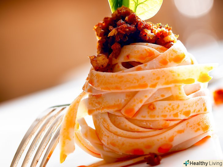 Спробуємо надати вишуканий вигляд пасті.надати такій страві апетитний вигляд-одна з найбільш складних завдань. Переконайтеся, що паста залишається вологою після того, як ви її приготували, але при цьому не злиплася в грудки. Щоб викласти пасту на тарілку візьміть щипці і беріть потроху. Розкладіть її, надаючи форму привабливих завитків. Продовжуйте викладати, поки гірка пасти не досягне розміру стандартної порції. Акуратно полийте пасту соусом так, щоб соус залишався в центрі страви, а не протік через нього наскрізь.- Якщо ви подаєте пасту з білковими продуктами, розмістіть їх зверху на гірці пасти. Наприклад, якщо ви додаєте креветки, то викладіть їх по верху, а не ховайте шматочки в середині купи пасти.