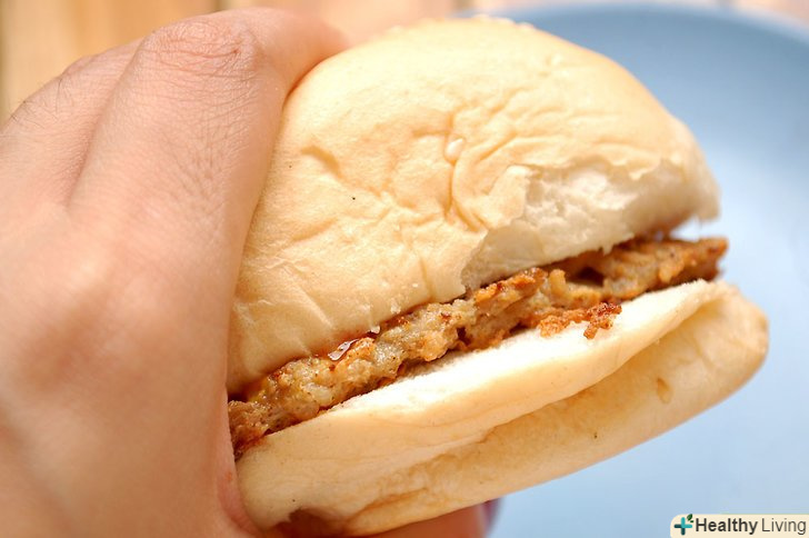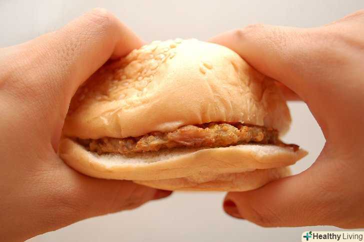 Не здавлюйте його занадто сильно.якщо не дотримуватися цього правила, ви ризикуєте повністю облитися витікає рідиною. Тримаючи гамбургер правильно, ви вбережете свій одяг від жирних плям.