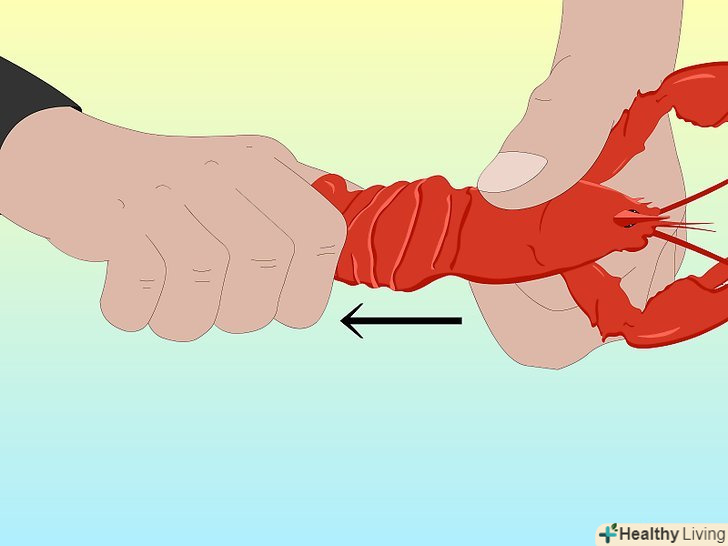 Крутите клешні.потягніть кожну клешню вниз і від тіла, щоб відірвати її. Крутите біля основи кожної клешні, щоб у вас в руках залишилися "руки" омара з прикріпленими до них клешнями.- М'ясо їдять руками. Скористайтеся виделкою для омара, щоб витягнути м'ясо з рук. Там не дуже багато, але воно того варте.