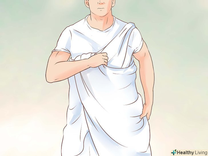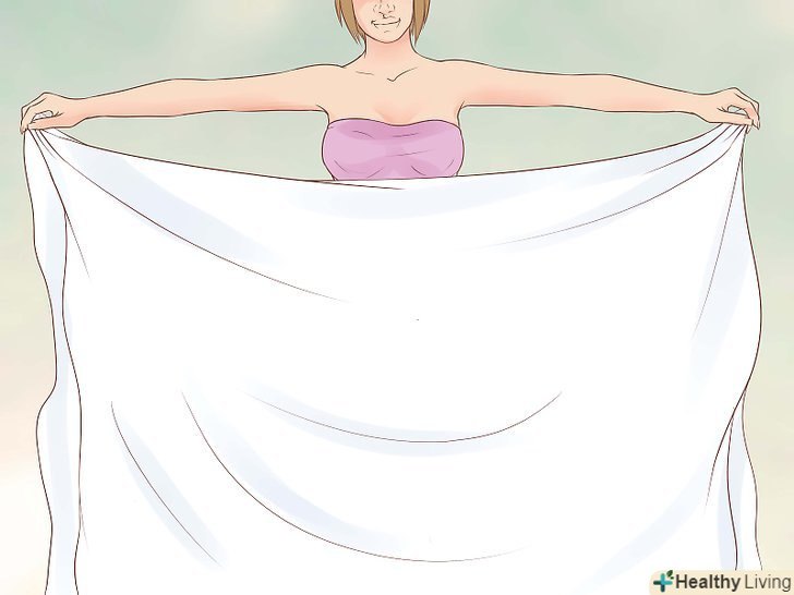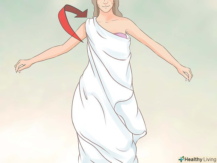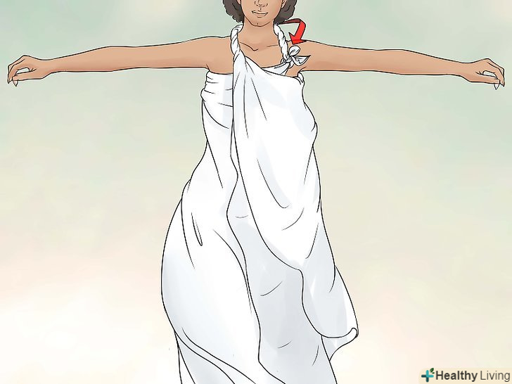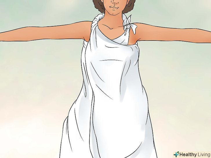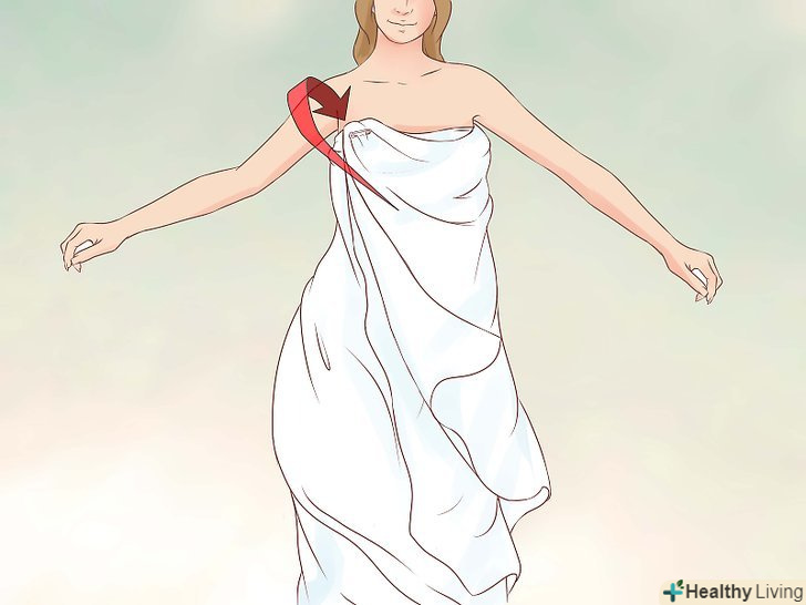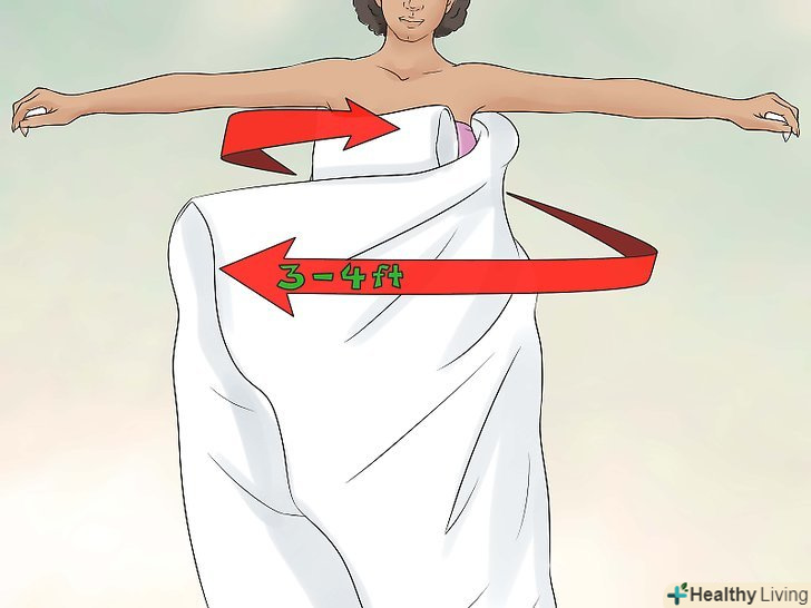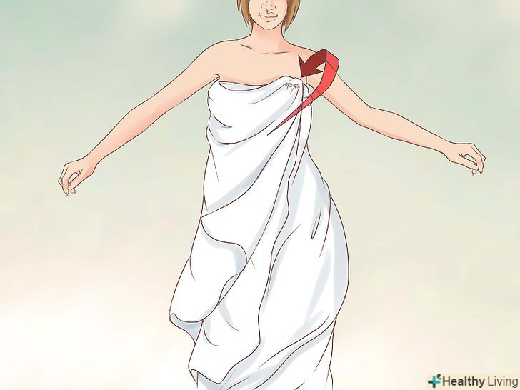 Перекиньте один кінець простирадла через плече.візьміть інший кінець і перекиньте його нижню частину спереду через ліве плече, його довжина повинна діставати до талії.