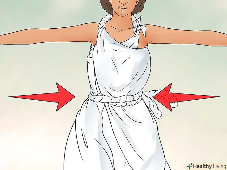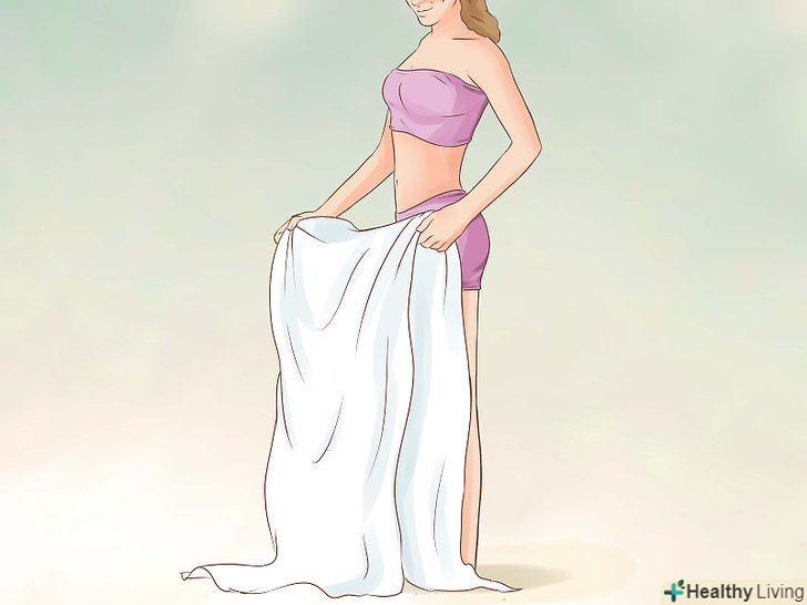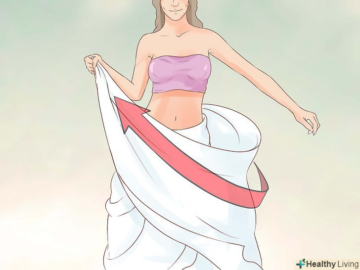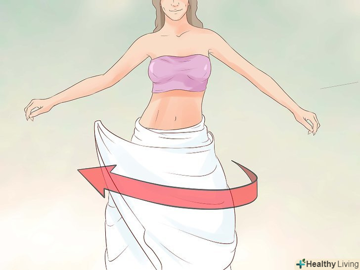 Інший кінець оберніть спереду.притримуючи складену простирадло на спині, оберніть залишився кінець тканини спереду. Коли обидва кінці перетнуться, слід закріпити їх разом на талії.
