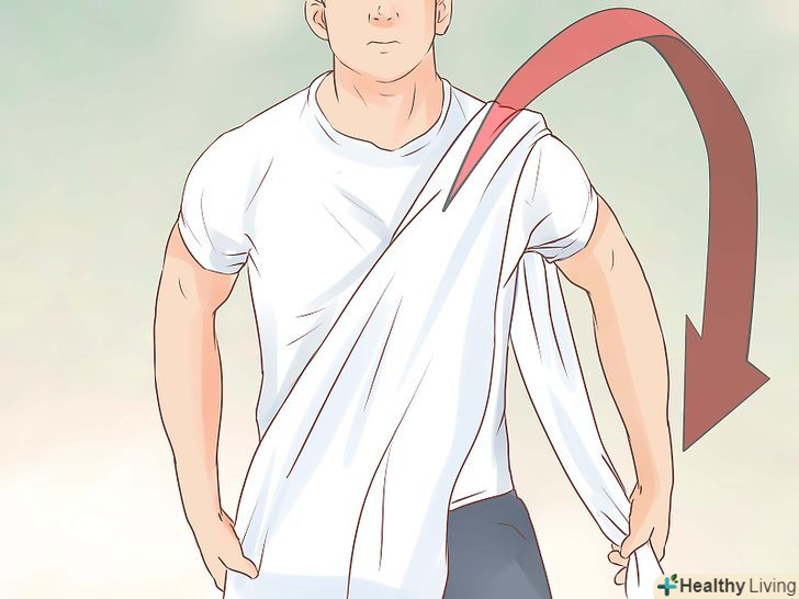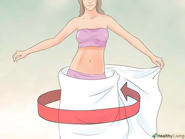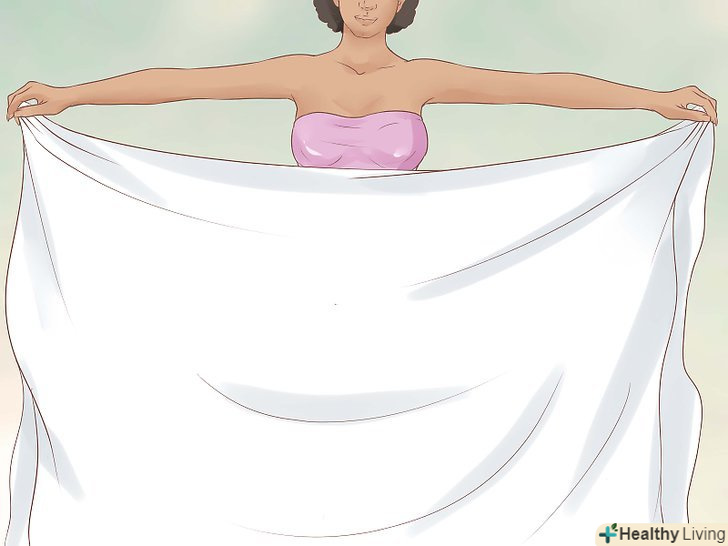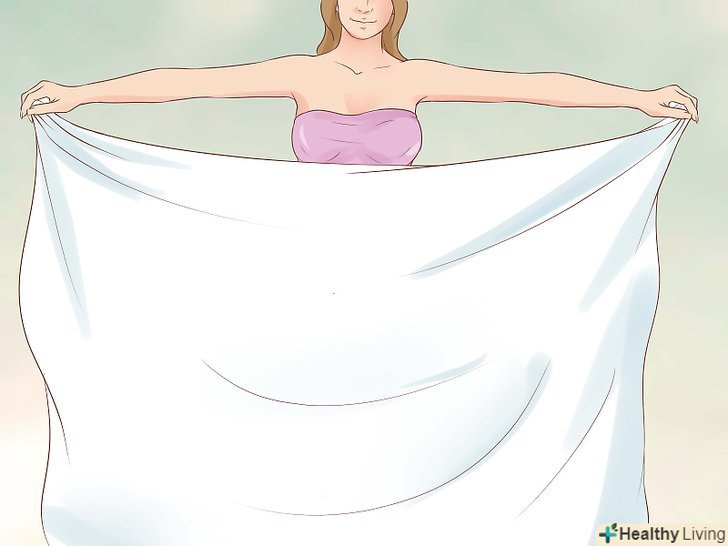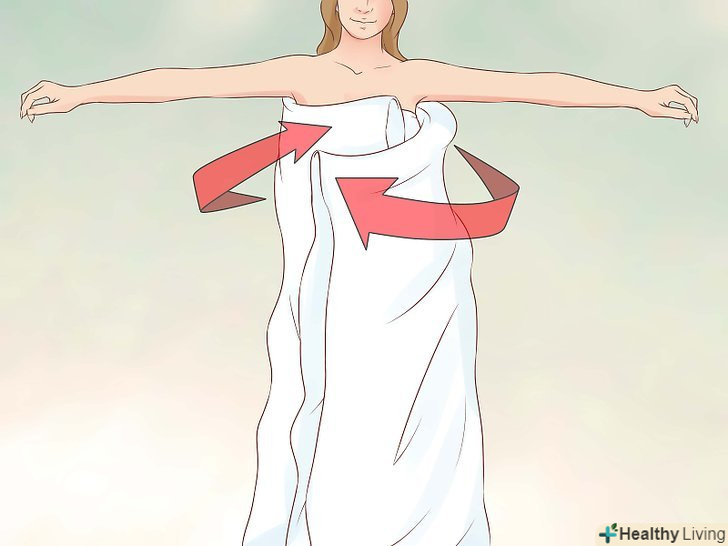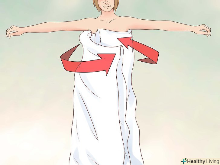 Оберніть тканину навколо грудей.притримуючи складену простирадло на рівні талії, спочатку оберніть один кінець навколо грудей, а другий кінець за аналогією з рушником.