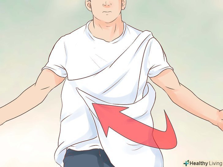 Продовжуйте обгортання. тканина повинна бути обгорнута поверх всього тіла, спереду вашої талії, під плечем і за спиною. Закріпіть кінець під плечем спереду.