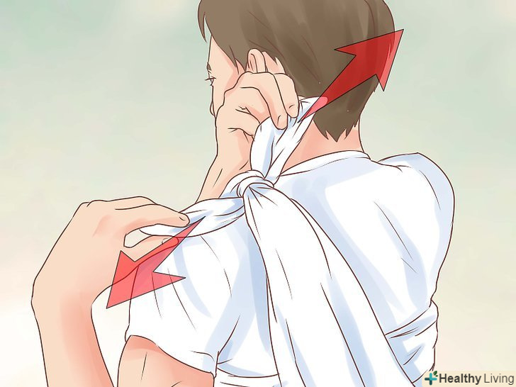 Зробіть петлю.щоб у вас вийшло щось схоже на мотузку, потрібно скрутити метр тканини Кілька разів. Цей вузол оберніть навколо шиї і закріпіть один кінець цієї мотузки до кінця, що йде навколо грудей.