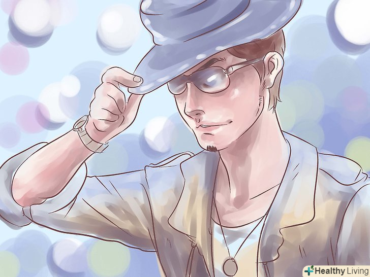 Змініть стиль одягу.якщо ви зазвичай виглядаєте акуратно і стильно, подумайте про те, щоб перетворитися на панка або гота. Носіть старий одяг, який ви зазвичай не носите або ж досліджуйте шафа батьків, щоб знайти вінтажну одяг, в якій вас не звикли бачити знайомі.- Чоловіки повинні одягатися молодше або старше свого віку. Якщо зазвичай ви одягаєтеся як 19-річний, подумайте про те, як одягається ваш батько, і почніть спостерігати за ним. Носіть сорочки поло, заправляючи їх в штани і прикріплюючи телефон до пряжки брюк, ви постарієте на 20 років за хвилину.