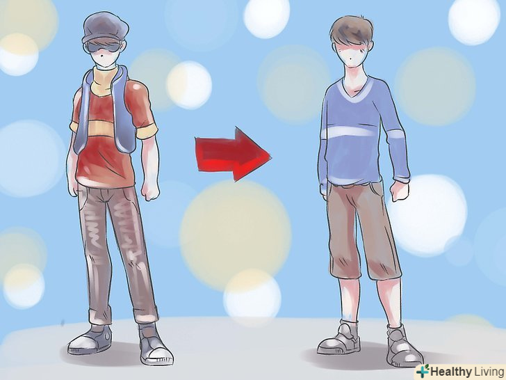- Жінкам варто подумати про те, щоб одягатися більш мужньо, носити штани, якщо ви зазвичай носите спідниці, щоб змінити загальний вигляд. Якщо люди звикли бачити Вас з макіяжем і в гарному одязі, для них стане сюрпризом, якщо ви одягнетеся в спортивний костюм.